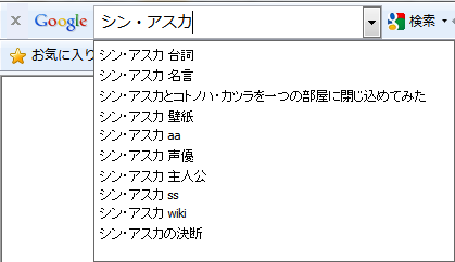 グーグルにアンド検索候補を聞いたら面白かったのでスクショ撮っといたものの、すっかり忘れて放置してたものです。今さら貼り。